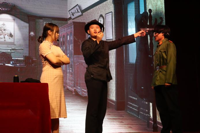 最后是由外国语学院带来的《风声》。故事从汪伪政府多名要员被暗杀开始,我党谍报人员在陷入险境后与敌人斗智斗勇,最终通过顾晓梦的牺牲保证了信息的及时送出,拯救了我党地下工作。无数仁人志士和英雄楷模,他们为了人民的幸福和祖国的繁荣抛头颅洒热血,和平时代的我们也应无所畏惧地战胜困难,用我们的信仰托起祖国兴隆昌隆。