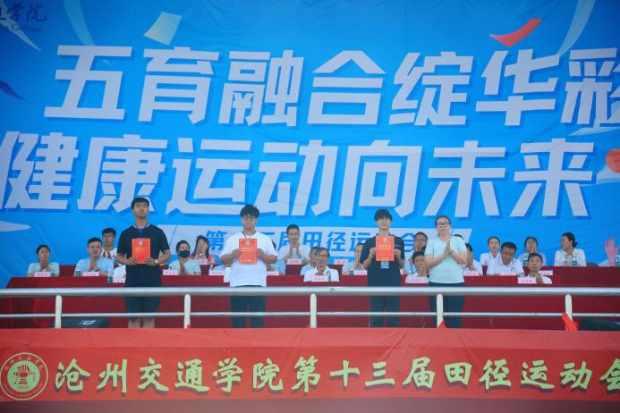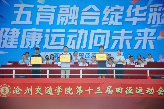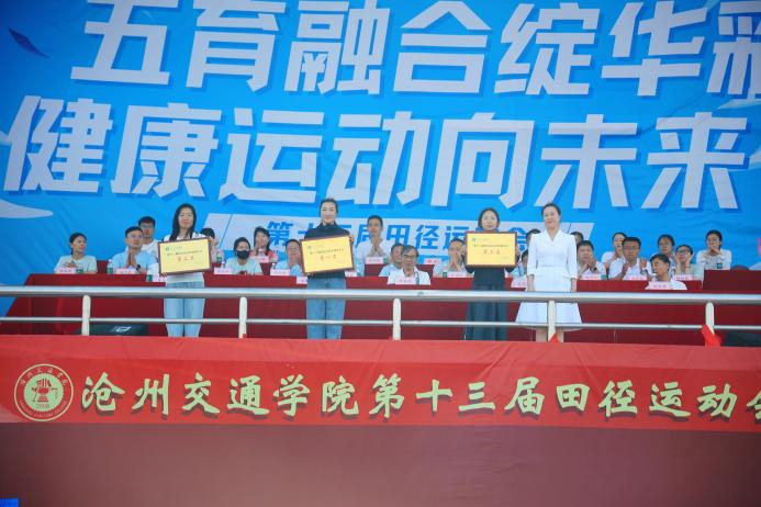 党委委员、人事处处长张丽艳为道德风尚奖获得单位代表颁奖。获得体育道德风尚奖的单位分别是轨道交通学院、土木建筑工程学院、机械与动力工程学院。