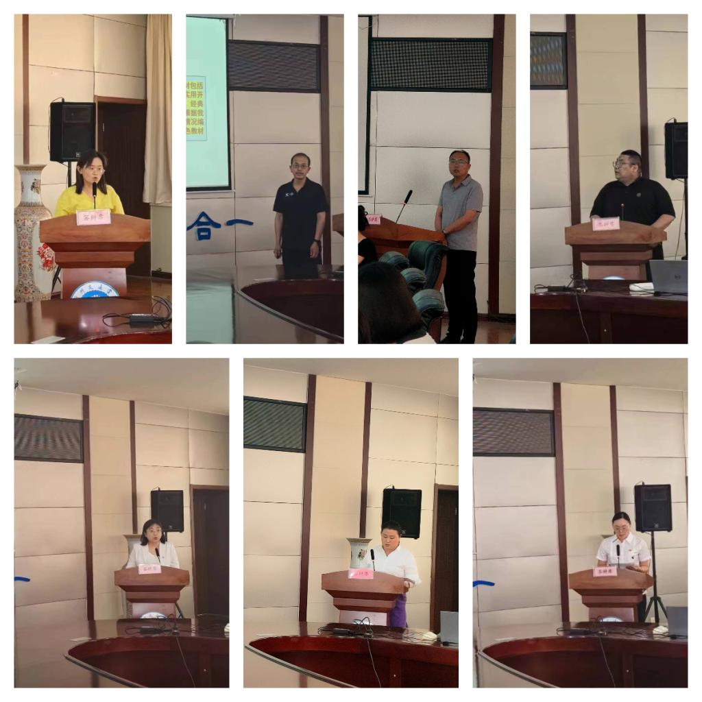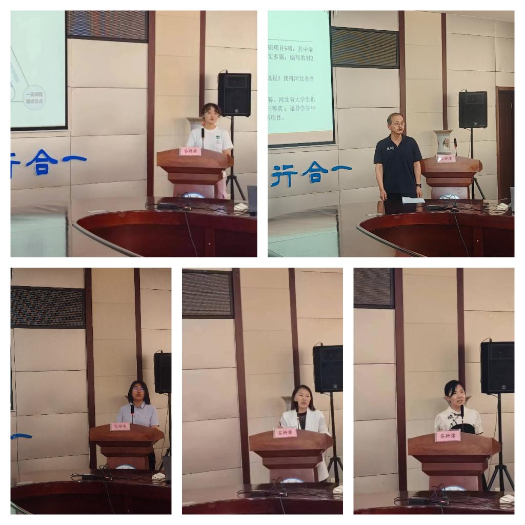其次进行的是教学团队答辩,各教学团队带头人就本团队成员结构、教学改革和建设成果、教材建设等方面进行了汇报。