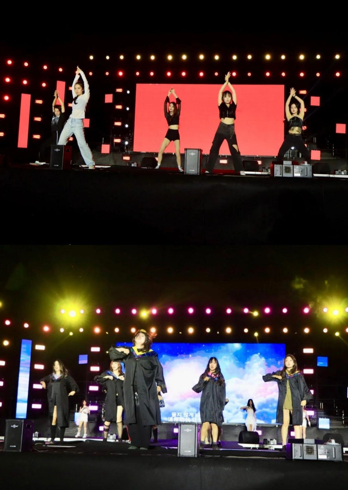 舞台上灯光璀璨,舞者们伴随着激昂或悠扬的音乐旋律翩翩起舞。舞者们灵动的身姿与激昂的旋律相得益彰,用精湛的舞技表达着对大学生活的热爱与不舍,对未来的憧憬与期待。