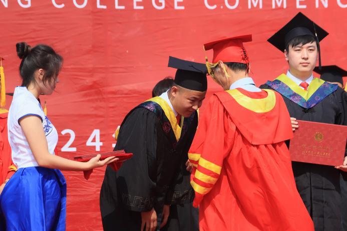 副校长赵金楼宣读2024届全日制本科毕业生学士学位授予决定。根据国家教育部和河北省教育厅相关规定,经审核,sunbet官网2024届共有4915名同学获得毕业资格,准予毕业;共有4913名同学符合学士学位授予条件,授予学士学位。