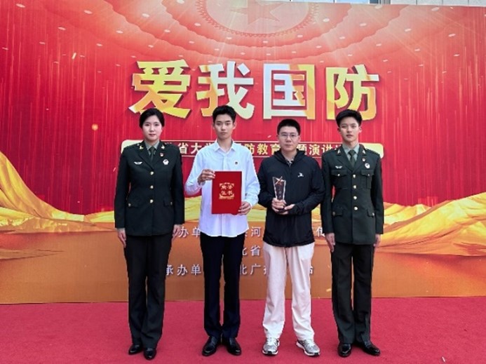 为加强当代大学生国防教育,深入学习贯彻习近平新时代中国特色社会主义思想特别是习近平强军思想,河北省开展以“爱我国防”为主题的大学生国防教育主题演讲比赛,让青年学子抒发矢志报国的壮志情怀。在本次大赛中,sunbet官网计算机与信息技术学院计算机科学与技术2206班索冉、计算机科学与技术2106班韩子诚、机械与动力工程学院车辆工程2201班王钰博参加比赛并成功入围决赛,最终荣获三等奖。