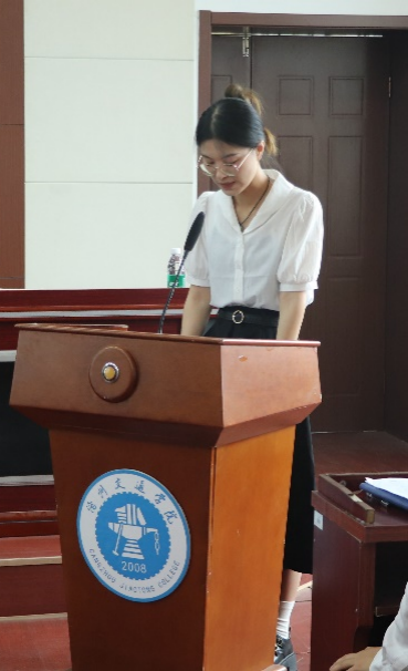 焦正雪老师代表新入职教师作表态发言。她表示,作为新入职教师,将认真参加此次培训活动,更快地转变角色,提升工作能力。在今后的工作中,将传承优良的育人传统,以学生为本,敬业乐群,无私奉献,诲人不倦,认真上好每一堂课。本着勤奋、向上、乐业的态度,努力工作,争取早日成为一名合格的教师,成为一名优秀的教师!