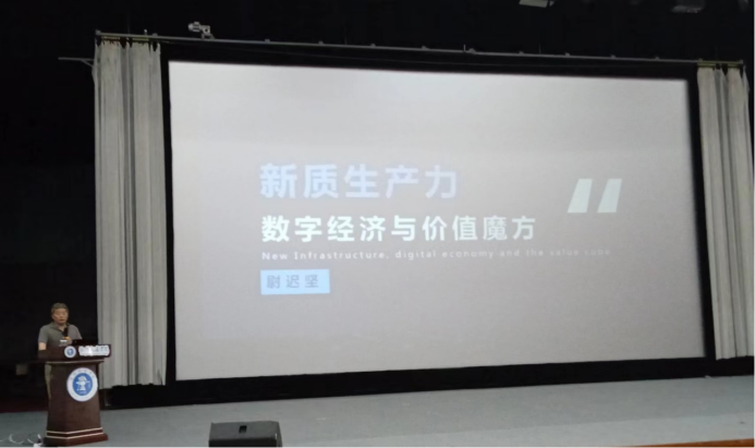 尉迟坚教授以“新质生产力——数字经济与价值魔方”为主题,围绕数字经济与价值魔方的核心内容展开了深入的讲解。他从全球经济困惑中的亮点切入,分析了德国工业4.0和美国基于互联网、大数据的第三次工业革命的背景和意义,并结合产业发展脉络,阐述了工业化、信息化、互联网新经济时代以及工业互联网的不同阶段。