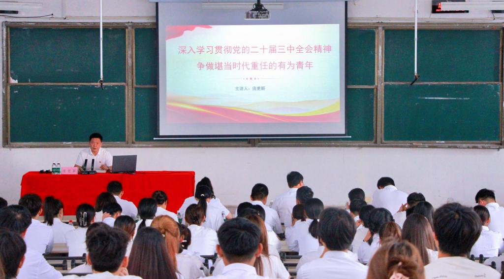 庞更新书记紧紧围绕学习宣传贯彻党的二十届三中全会精神和全会通过的《中共中央关于进一步全面深化改革、推进中国式现代化的决定》,作题为《深入学习贯彻党的二十届三中全会精神 争做堪当时代重任的有为青年》的宣讲报告。庞书记从历史脉络看二十届三中全会精神,准确把握三中全会的主题和核心内容,贯彻三中全会精神、做新时代有为青年,用“金钥匙”开启成功之门四个部分进行了全面的解读和细致的讲解。