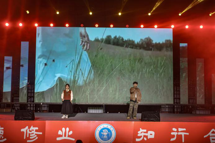 怀揣初心,肩担希望向前行。在第三篇章中,有新时代青年绽放出的光彩,也有辅导员对新生们的谆谆教诲。《启航》中,辅导员们向新生们传达了关心与期望,一句句叮咛感化人心;说唱歌曲《如果信念有颜色》以独特的音乐风格和深刻的主题内涵,成功地将爱国情怀与说唱艺术完美融合,为听众们带来了一场震撼心灵的听觉盛宴;融合舞蹈《China》展现了中华文化魅力,传递了文化自信、和谐共融与团结精神;歌曲《篇章》鼓励我们坚韧乐观,勇敢追梦,书写精彩人生篇章;民族舞蹈《美丽中国》以独特艺术形式展现了祖国多元文化之美,传达了对祖国的热爱、激励着我们学习成长,为祖国做贡献;歌曲《我爱你中国》传达了深厚的爱国情怀,激发我们对祖国的热爱与崇敬,鼓舞我们珍惜时光、努力报国。