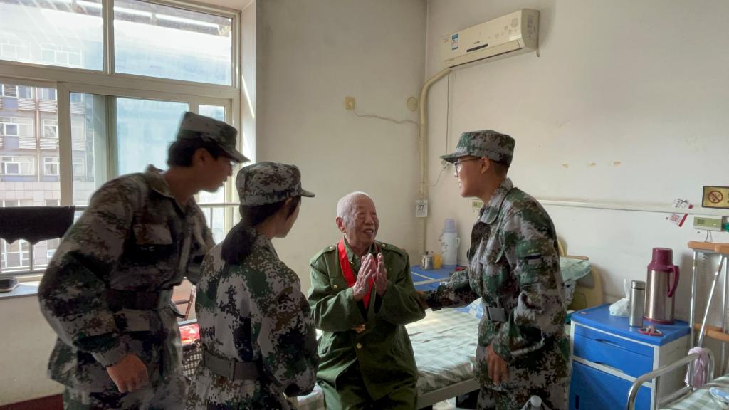 表演结束后,艺术学院学子们积极热情地与退役老兵合影留念,并主动搀扶老兵回到病房,走进退役老兵的日常生活中,与他们交流互动,关心他们的身体状况,倾听他们讲述刻骨铭心的抗战事迹,感受老一辈军旅战士的真情告白。