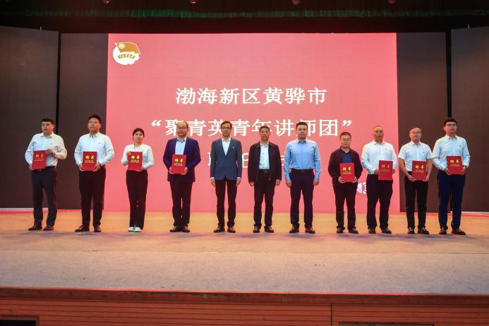 渤海新区党工委黄骅市委组织部副部长王勇宣读《关于聘任渤海新区黄骅市聚青英青年讲师团成员的决定》。