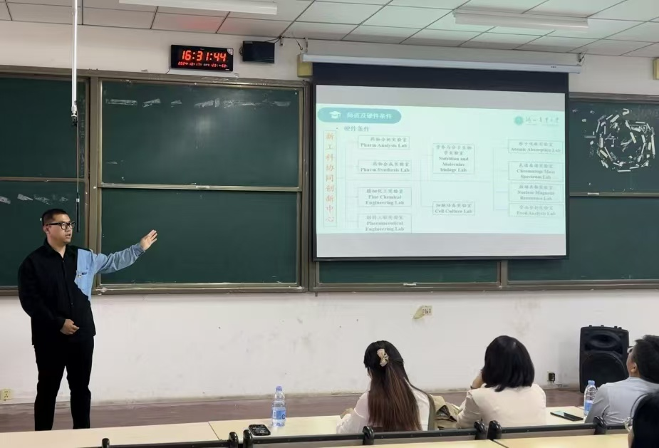会后,河北农业大学一行来到教室,为学院化学工程与工艺和制药工程专业的学生开展考研指导交流会,河北农业大学化工制药系主任许国贺、理工系研究生辅导员胡珊珊分别介绍了河北农业大学总体情况、研究生招生政策、研究方向、毕业生就业情况等,鼓励在场同学坚定考研信心,提早谋划,明确目标,制定科学有效的备考计划。同时,对学生发出邀请,欢迎同学们来到河北农业大学继续深造。
