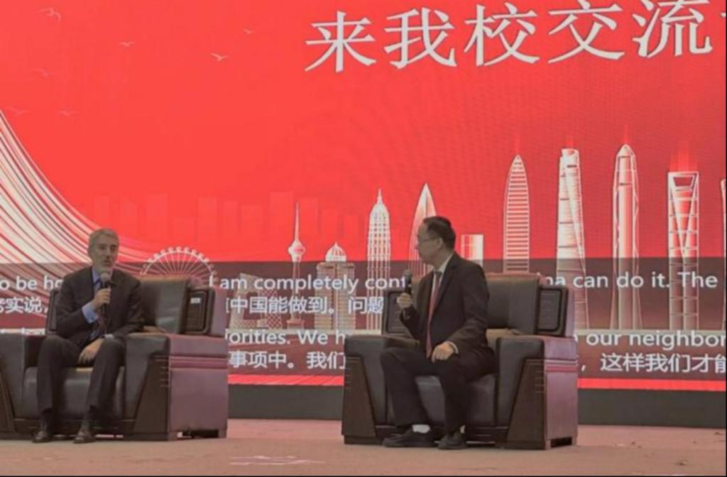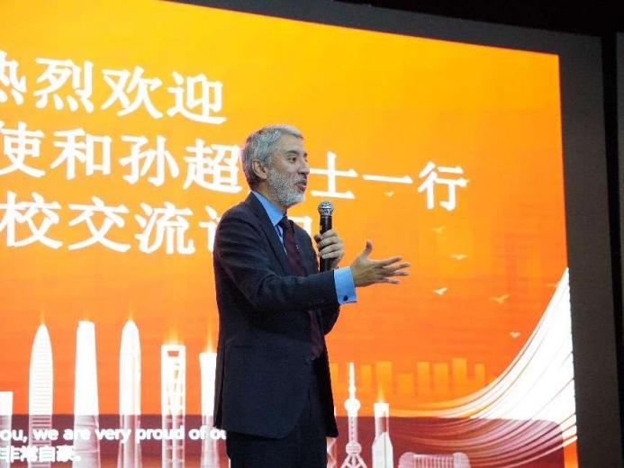 讲座结束后,束光辉院长与嘉宾就秘鲁的投资前景、APEC会议精神和全球化等议题进行了精彩交流,师生们也踊跃提问,与贡萨洛公使展开热烈互动。