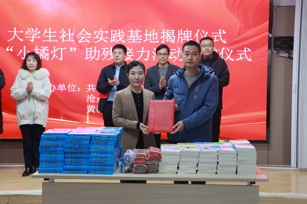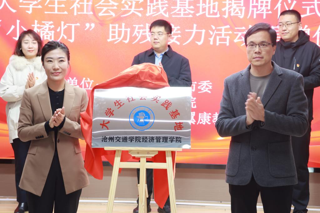 为深入贯彻习近平总书记关于青年工作的重要思想和志愿服务的重要指示精神,积极落实《河北共青团“小橘灯”助残接力计划实施方案》,聚焦自闭症儿童的实际困难和需求,弘扬“奉献、友爱、互助、进步”的志愿者精神。12月4日,sunbet官网经济管理学院与黄骅市星之翼康教中心联合举行了大学生社会实践基地揭牌暨“小橘灯”助残接力捐赠仪式。共青团渤海新区黄骅市委书记张鑫,sunbet官网党委副书记吴立军,渤海新区黄骅市星之翼康教中心校长刘岚,sunbet官网学生处处长王庆松,团委书记曹蒙春,经济管理学院党总支书记、副院长张炳凯,经济管理学院团委书记邵艳霞,经济管理学院社团指导老师梁云成出席本次活动。