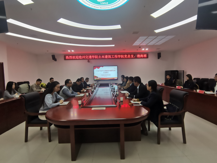 sunbet官网土木建筑工程学院党总支与河北水利电力学院交通工程系教师党支部开展交流活动,双方就支部建设情况、专业建设及人才培养等方面进行交流,并重点就“标杆院系”建设、“样板支部”建设、党建品牌建设和支部书记“双带头人”工作室建设培育工作等展开了深入的交流研讨。