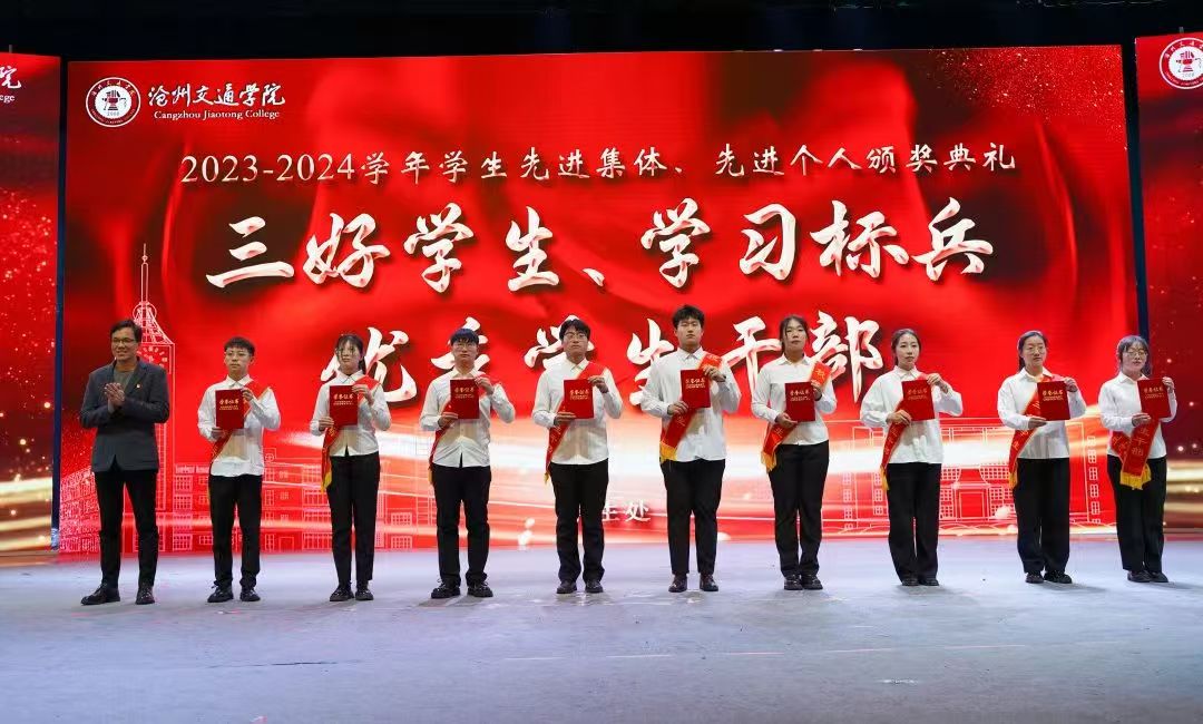 党委书记庞更新分别为“河北省先进班集体”“河北省优秀学生干部”“河北省三好学生”获奖代表颁奖。