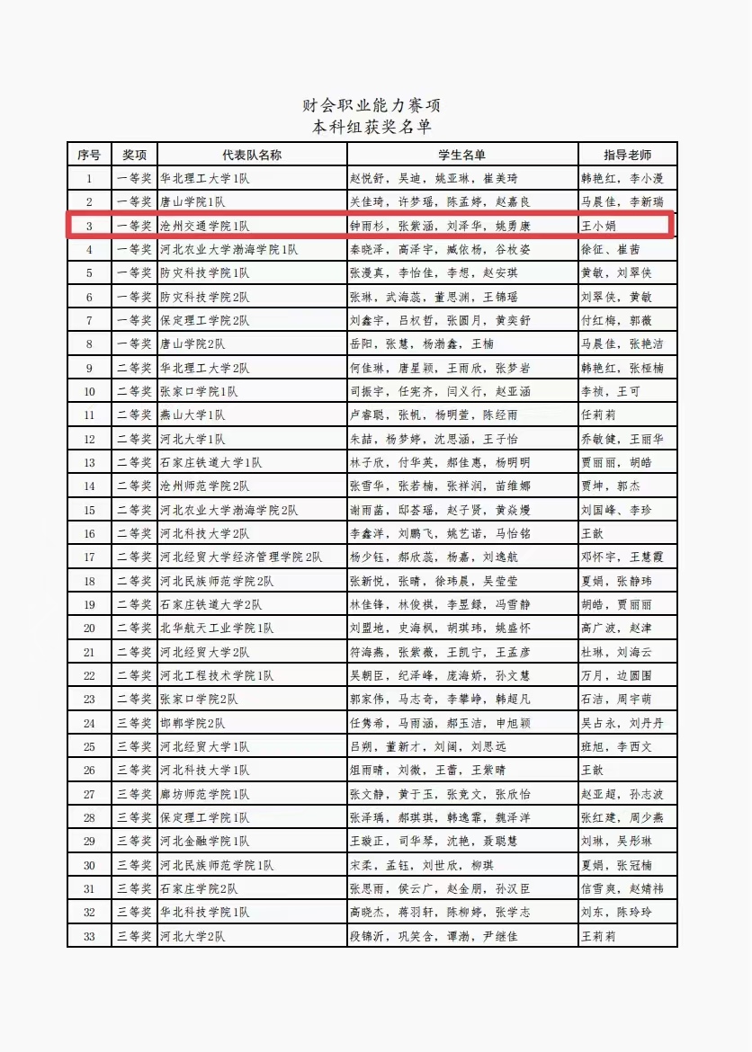 其中财务报表比赛中本科组三等奖一项、优秀奖一项;教师组三等奖两项。
