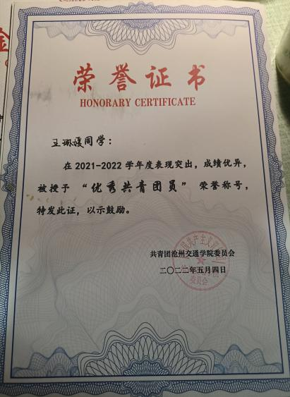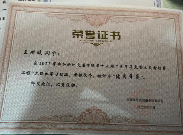 青马工程优秀学员荣誉证书