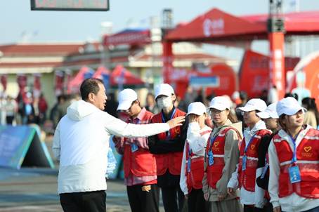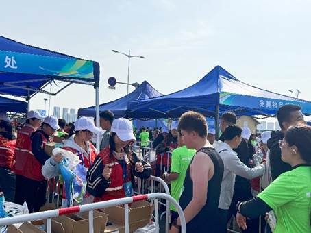 上午6时,志愿者抵达黄骅港后立即奔赴岗位。他们化身“流动坐标”,以精准高效的指引保障选手动线畅通;他们细致核对能量补给包,确保无一错漏;他们全程值守,沉着应对突发状况。从选手的第一声问候到终点的最后保障,志愿者们用温暖笑容串联全程。