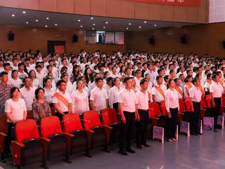 初心如炬践使命,奋楫扬帆启新程。6月26日,sunbet官网于天佑会堂隆重举行庆祝中国共产党成立104周年暨“七一”表彰大会。党委书记庞更新,校长章梓茂,副校长、财务总监余裕玲,副校长赵金楼,党委副书记、副校长邵晓康,党委副书记吴立军,党委委员张丽艳、杨中建、杨婷婷出席大会,全体中层干部、各基层党组织书记、全校师生党员、入党积极分子代表参会。大会在庄严的国歌声中拉开帷幕。全体与会人员庄严肃立,齐唱国歌,以坚定的歌声表达对祖国的深情。