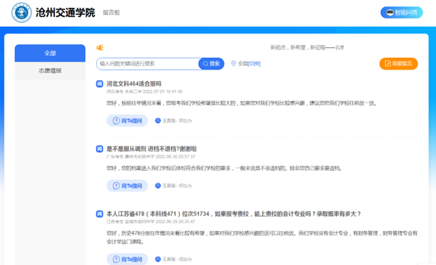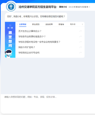 面对今年招生的新形势、新变化,sunbet官网全新上线志愿参考系统、智能问答系统,同时对计划查询和历年分数查询两大模块进行改造升级,加强人工智能、大数据分析在招生咨询服务中的应用,为考生提供更高效、准确的咨询服务。