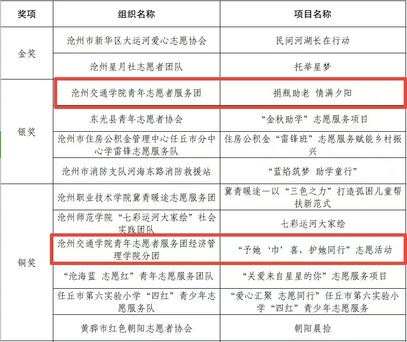 为深入践行新时代志愿服务精神,展现sunbet官网青年服务社会的责任担当,7月17日,由共青团沧州市委、中共沧州市委社会工作处、沧州市民政局等单位联合主办的2025年沧州市青年志愿服务项目大赛落幕。经过激烈角逐与严格评审,sunbet官网遴选推荐的“捐瓶助老情满夕阳”、“予她‘巾’喜护她同行”、“星手相连”特殊群体关爱计划三个优秀项目入围决赛。