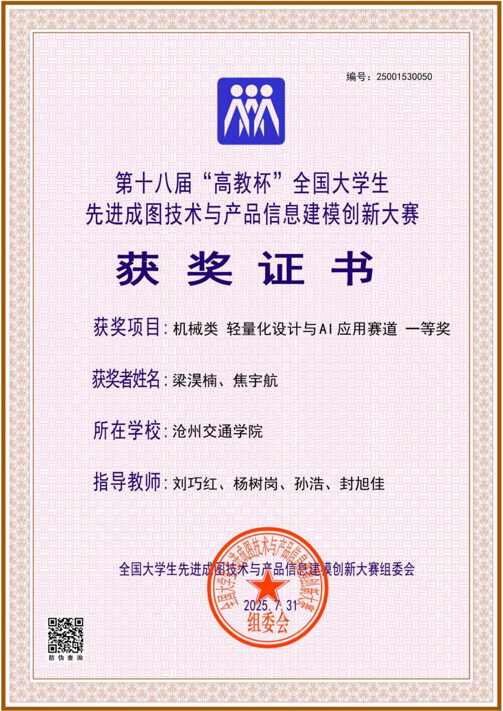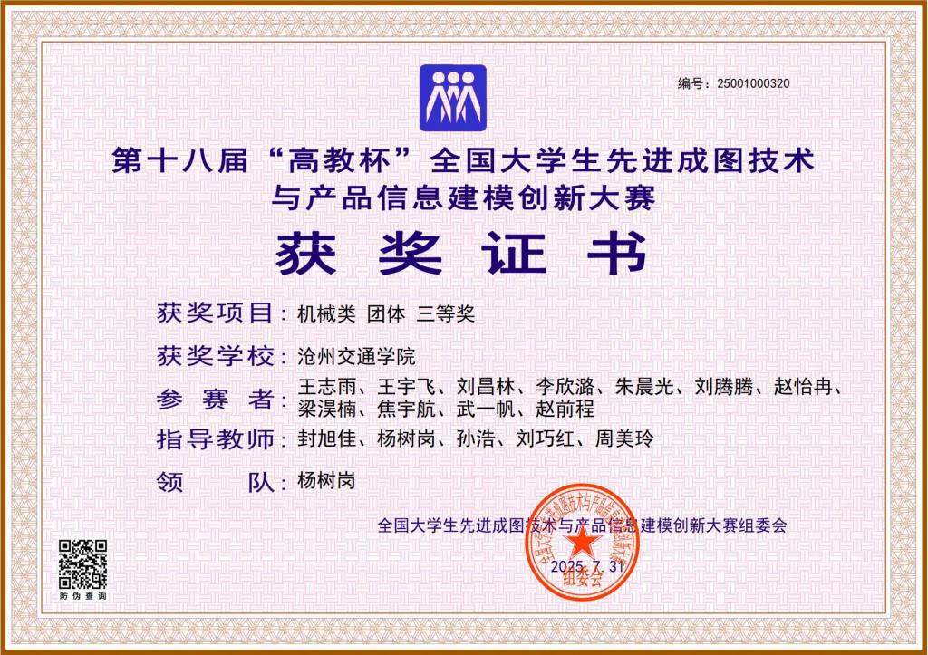 机械类先进成图技术赛道 团体三等奖