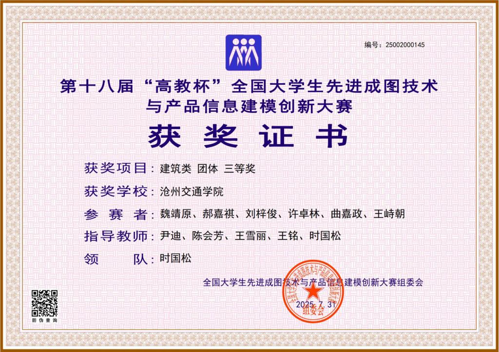 建筑类先进成图技术赛道 团体三等奖