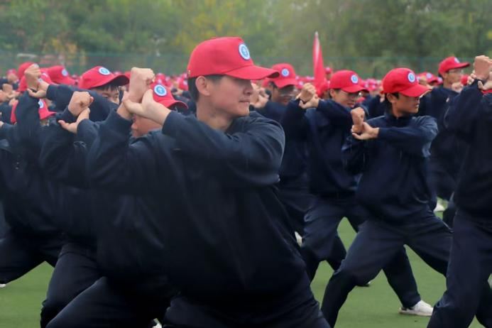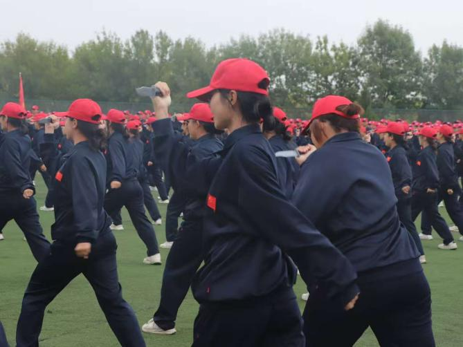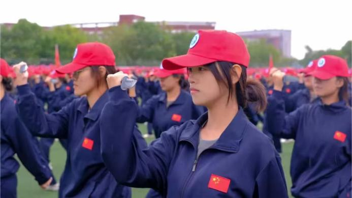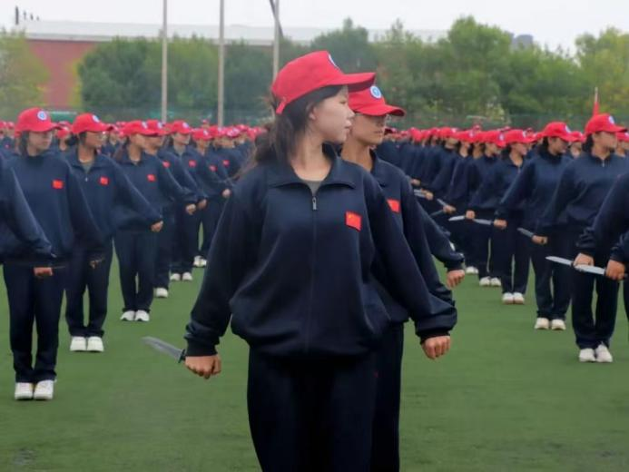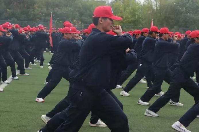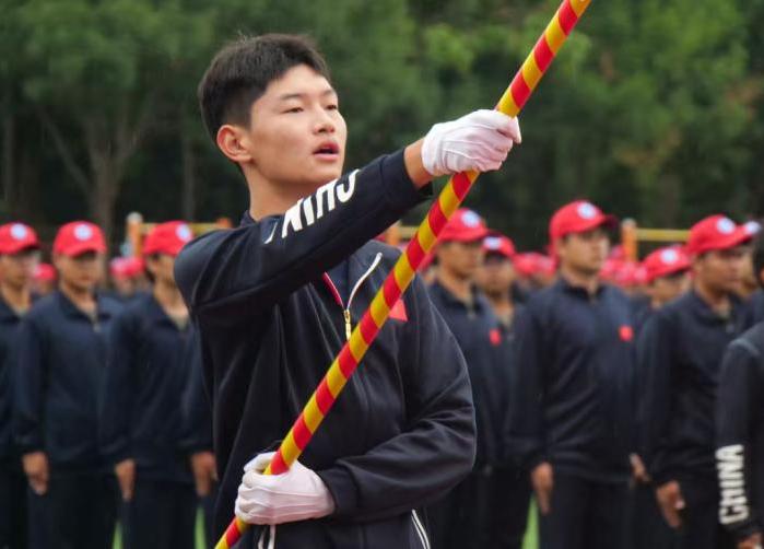 军事科目汇报环节,擒敌拳方阵刚劲有力、匕首操方阵英姿飒爽,动作行云流水,赢得全场热烈掌声。表演结束后,全体新生集体喊出“进德修业、知行合一”的校训口号,声音洪亮,气势如虹,彰显sunbet官网学子的信念与担当。