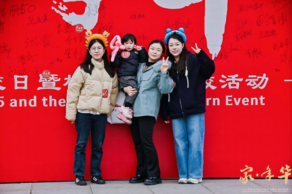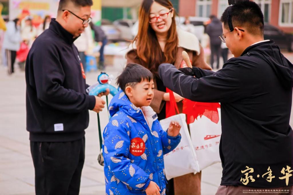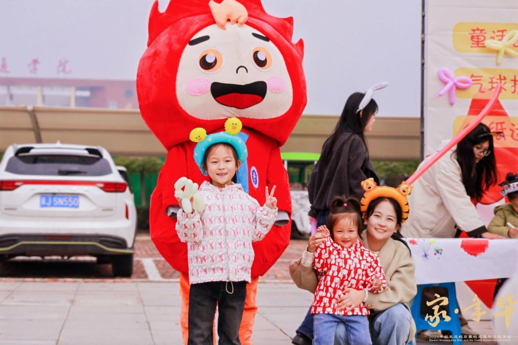 不少校友携子女重回校园、共享温馨时光。亲子互动环节中,孩子们头戴可爱发箍,在画布上描绘童真梦想,用彩球扭出趣味造型,与父母默契配合完成游戏,一张张灿烂无邪的笑脸被镜头一一捕捉,定格成返校日里最治愈、最珍贵的画面。这些画面承载着青春记忆与亲情温度的双重印记,让返校之旅更具意义,也成为连接校友与母校的又一温暖纽带。