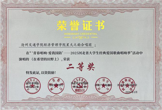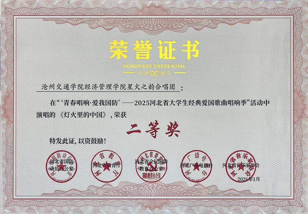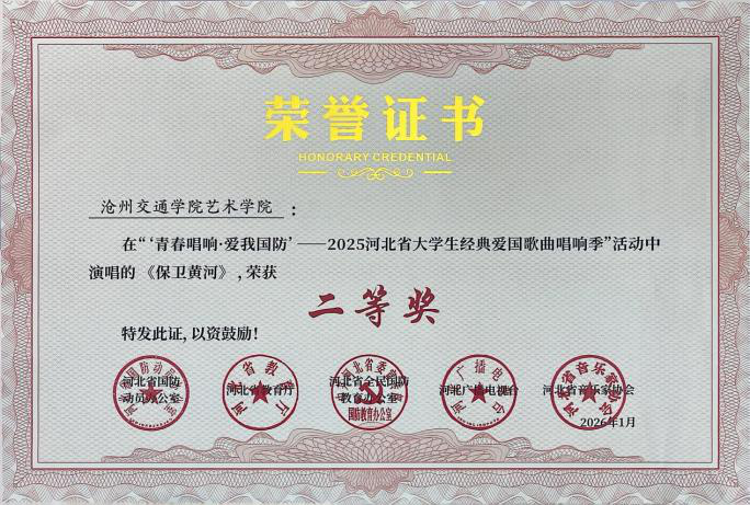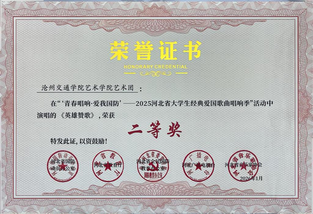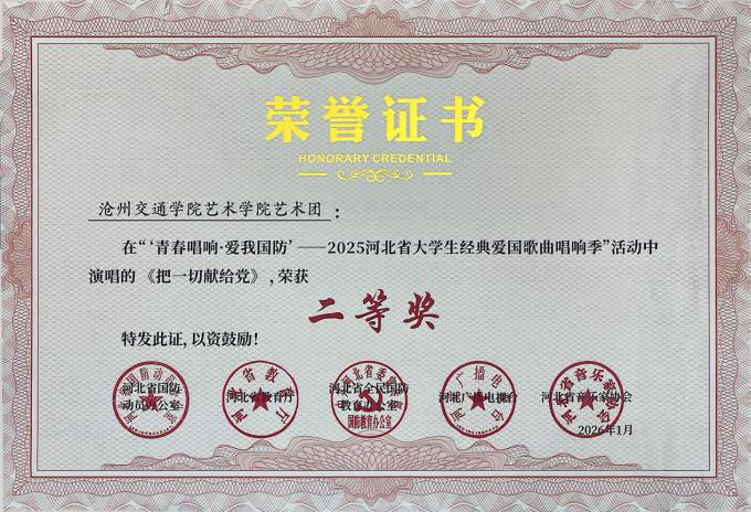 近日,“青春唱响・爱我国防”——2025河北省大学生红色经典歌曲唱响季暨国防教育活动获奖名单公示,sunbet官网报送的六首参赛曲目凭借出色的艺术呈现与深刻的主题表达,全部荣获二等奖,充分展现了sunbet官网学子的家国情怀与青春风采。