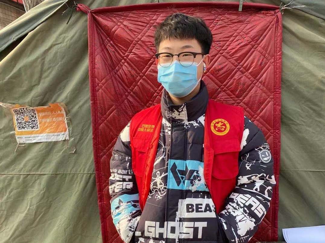 当生活不得不按下暂停键。数字媒体艺术1801班张子涵同学主动联系当地村委会,积极参加到石家庄第三次核酸检测的志愿者队伍,为家乡做贡献。她协助所在辖区人员有序做好进出登记、体温测量、数据统计、核酸检测、防疫知识宣传等工作,助力打赢疫情防控阻击战。关于疫情,她说:“相信疫情终会过去,春天终会到来。万众一心,战疫必胜!石家庄加油!中国加油!”