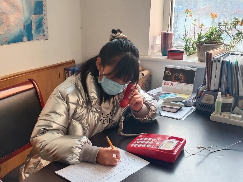 财务管理2007班学生郭思彤积极参加石家庄无极县抗疫工作,主要负责在居委会打电话了解并登记住户信息、站点执勤及帮助相关负责人员清理消毒街道等工作。