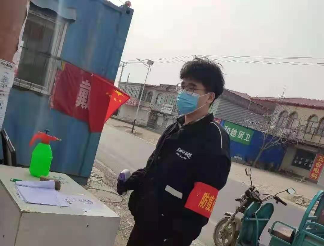 计科1901班张兆锦同学积极参加家乡抗疫工作,负责在村口对出入人员进行体温测量、登记等工作。在此次志愿服务期间,他和搭档共完成了200名村民的核酸检测工作。他说:“虽然我不能像医护人员一样在前线治病救人,但我也想做些力所能及的事情为人民服务。”