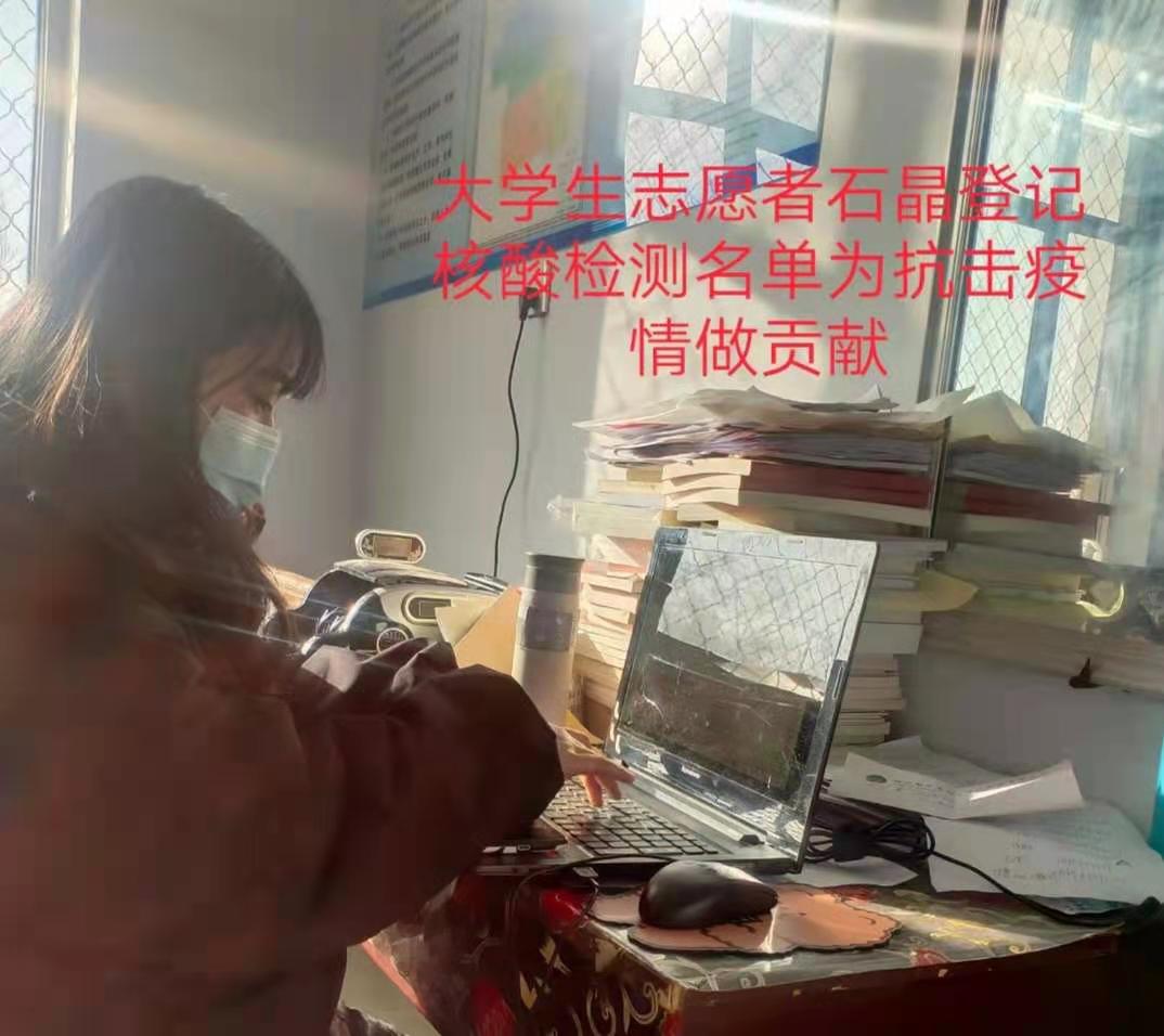 化工2001班贡明妍同学负责小区出入人员信息登记,测量体温,帮助社区统计核酸检测人员信息等工作。她表示,被需要是一种幸福。通过志愿服务工作,她不仅体会到工作的艰辛,也明白了疫情防控的重要性。她坚信 ,疫情终会过去,希望就在眼前,黑暗的尽头是光明,一切的美好都在路上,愿山河无恙、人间皆安。