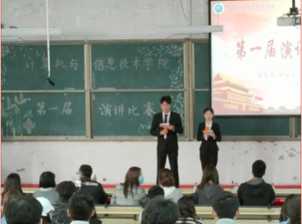 计算机与信息技术学院依托党支部、团委,整合学院党史宣讲力量,组建党史学习教育师生宣讲团,列出重点主题和选题,面向师生,开展面对面、点对点宣讲活动,开展党史专题辅导报告会、主题班会、入党积极分子党史知识培训、视频观看、主题演讲、歌手大赛等多项活动。面向广大学生讲述党的历史、传承红色基因,在丰富党史学习教育的同时,充分发挥广大师生学习、传播党史的先锋带头作用。