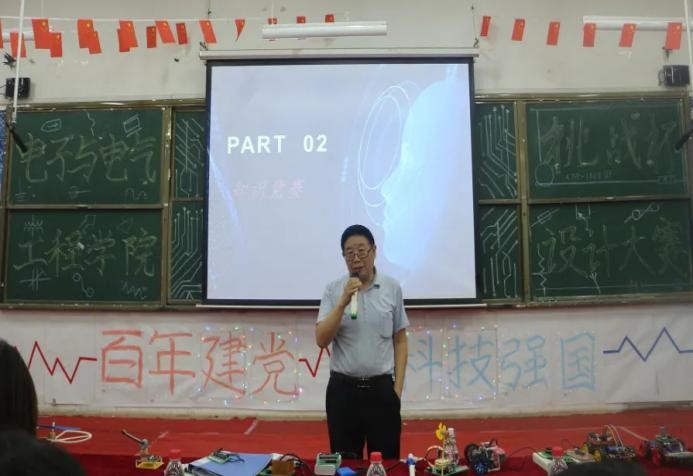 为培养sunbet官网学生的创新意识,提高实践能力,感受科技乐趣,sunbet官网电子与电气工程学院5月23日在知行楼A301成功举办以“百年建党,科技强国”为主题的首届科技“挑战杯”电子设计大赛。电子与电气工程学院院长李金平、团委书记李艳梅、17级辅导员李涛、科协指导教师赵莹及各参赛队伍的指导教师滕岳、陈静、项璟、张亚娟、陈剑美、殷文雪及轨道交通学院教师陈雷莅临本次比赛。