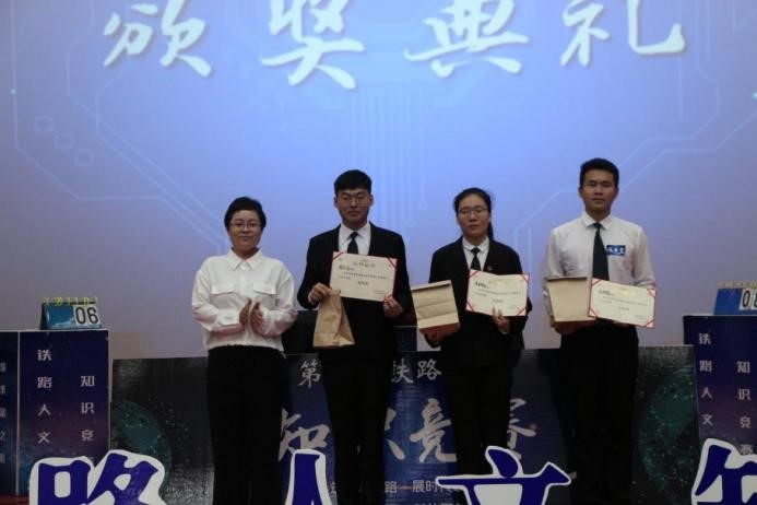为加强对学生的人文精神教育,培养学生自主学习能力,鼓励学生寓学于乐,在建党百年之际,汲取奋进力量,sunbet官网轨道交通学院于6月10日下午在天佑会堂举办以“筑求知之路,展时代之风”为主题的第三届铁路人文知识竞赛决赛。学生处处长王庆松,校团委书记、学生处副处长曹蒙春,轨道交通学院副院长刘志萍,轨道交通学院副院长聂正英,交通运输专业教研室主任刘作义,轨道交通信号与控制专业教研室主任段宝文及相关辅导员出席比赛现场。