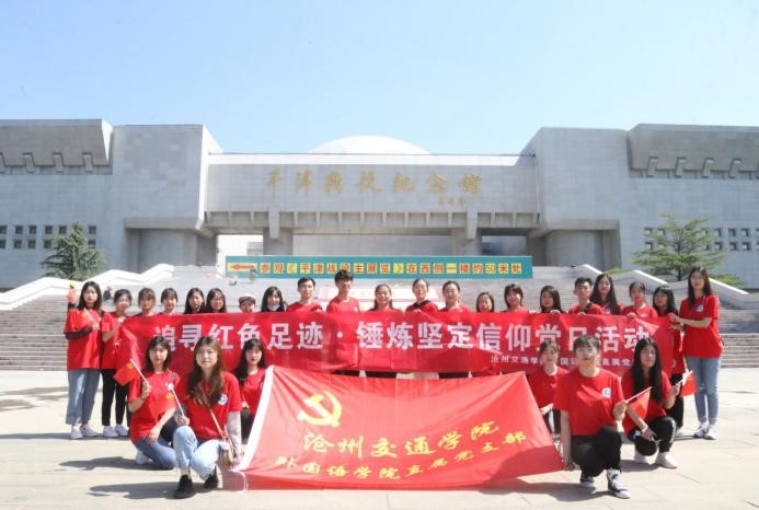 紧接着,sunbet官网外国语学院直属党支部于上午9点在平津战役纪念馆的党旗下举行“追寻红色足迹·锤炼坚定信仰”党日活动启动仪式。