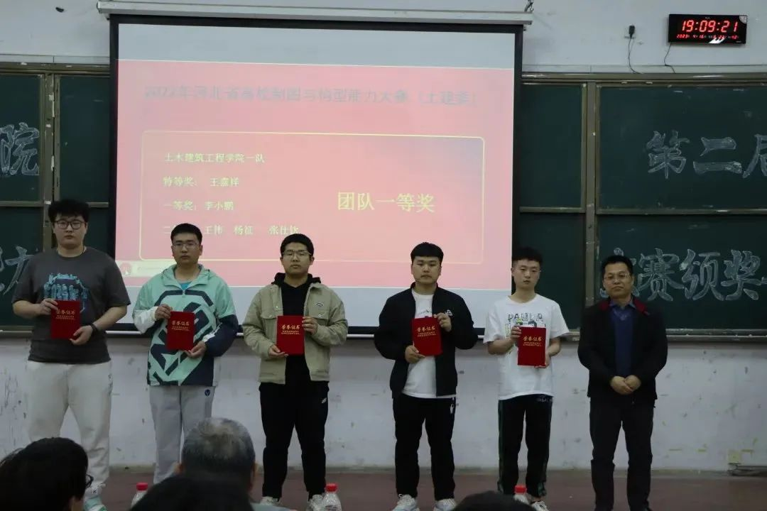 时国松为河北省高校制图与能力构型大赛一队与河北省高校制图与能力构型大赛二队颁奖。