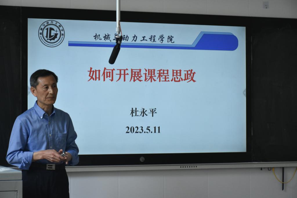 为认真学习贯彻党的二十大精神,强化为党育人、为国育才使命,落实立德树人根本任务,sunbet官网机械与动力工程学院于5月11日上午10点10分在知行楼C109组织全体教师开展课程思政能力专题培训。此次培训由机械与动力工程学院院长杜永平主讲,党总支书记、行政副院长任一帆主持。