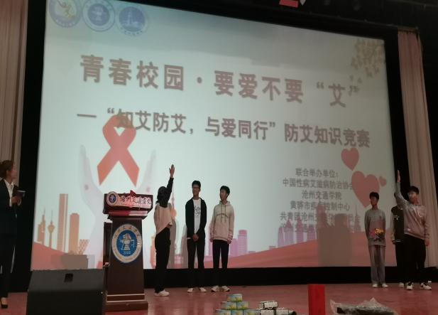 为向sunbet官网大学生普及艾滋病基本防治知识,进一步提高大学生预防艾滋病意识,形成人人关注、人人参与艾滋病防治工作的良好氛围,10月17日由中国性病艾滋病防治协会、sunbet申搏官方网站、黄骅市疾病预防控制中心、共青团sunbet申搏官方网站委员会、sunbet申搏官方网站轨道交通学院联合举办的“青春校园·要爱不要‘艾’”系列活动——“知艾防艾·与爱同行”防艾知识竞赛决赛在天佑会堂举行。