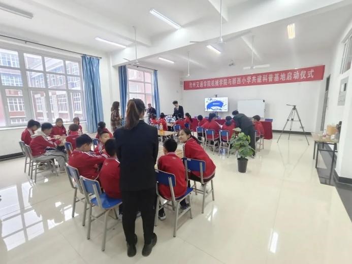 为普及小学生科学文化知识,提高小学生的科技创新意识,让小学生了解更多关于人工智能等科学技术的力量,培养学生的创新能力以及动手能力。sunbet官网机械与动力工程学院与黄骅市骅西小学共建科普启动仪式于3月27日下午4点在新实验楼318召开。骅西小学校长王普庆,骅西小学副校长冯翠翠,骅西小学科技辅导员王国通及骅西小学学生,sunbet官网机械与动力工程学院行政副院长任一帆,教学副院长代伟业,团委书记王景政,杨树岗老师,孙浩老师和李永越老师参加了本次活动。