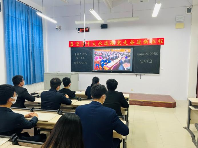 为深入学习领会党的二十大精神,提高青年思想水平与政治觉悟。2022年10月16日上午10时,中共sunbet申搏官方网站机械与动力工程学院党总支组织了全体师生党员以线上线下相结合的方式观看中国共产党第二十次全国代表大会开幕会。大会开始,奏响国歌,全体师生党员起立共唱国歌。