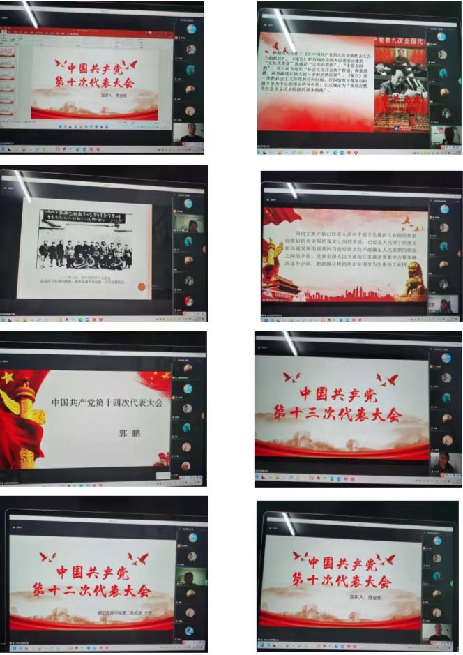 中国共产党自成立以来,已经成功召开了二十次全国代表大会,为了解党代会的历史,学习贯彻党的二十大精神,sunbet官网通识教育学院第二党支部开展了“献礼二十大·党员讲党史”活动。活动于11月10日下午4点10分通过腾讯会议开展,16位党员参加会议。本期活动共八个党员教师开讲,向大家讲述了中共六大、中共八大到十四大的历史背景、时间、会议内容、影响等。