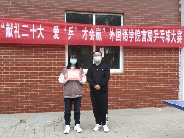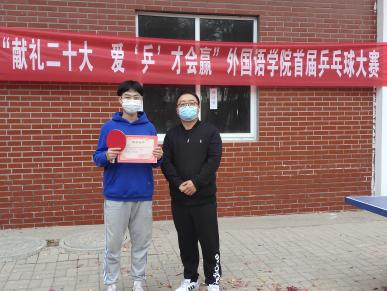经过几个小时的激烈角逐,商英2012班翁宇探、英语2106班吴文兵、英语2107班曹文博依次获得男子单打前三名的好成绩;英语2106班卢梦甜、英语2108班武文慧、英语2202班谢思雨依次获得女子单打前三名的好成绩。陈超副院长、周志慧老师、曹琳茜老师分别为获奖选手颁奖。