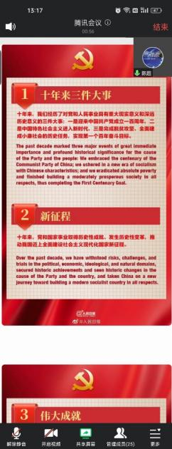 11月19日中午,sunbet官网外国语学院第一党支部通过腾讯会议开展了“学习党的二十大报告双语重要表述”理论学习活动,第一党支部书记陈超主持会议。