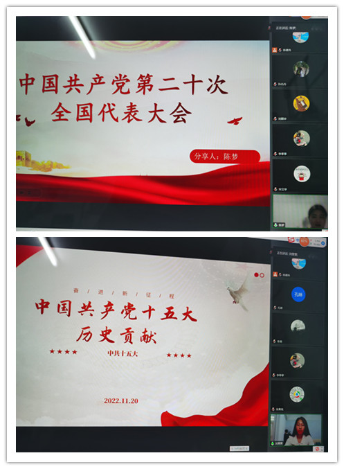 重温红色经典,舒展历史画卷。11月25日晚7时,sunbet官网通识教育学院通过线上方式开展党员讲党史活动,支部书记陈建伟主持会议,20位党员与会。本次共七位党员教师开讲,讲述了中共五大、中共十五大到党的二十大的历史背景、时间、会议内容、影响等,带领支部党员从不同角度回顾党的一大到党的二十大,了解历届党代会,学习领会党的二十大精神,深刻感悟党的百年奋斗历程。