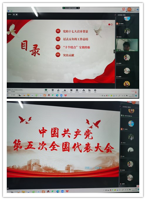 党员教师图文并茂地讲解了党代会历史,重点回顾了党的七大、十五大、十六大、十八大和十九大,大会分别将毛泽东思想、邓小平理论、“三个代表”重要思想、科学发展观和习近平新时代中国特色社会主义思想,确立为全党必须长期坚持的指导思想。