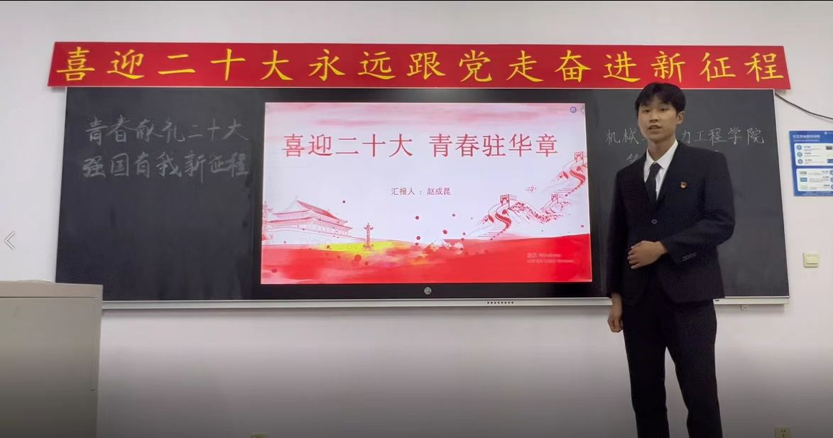 机械与动力工程学院第二党支部开展“青春献礼二十大,强国有我新征程”主题宣讲活动,支部成员录制宣讲视频,深刻阐释了党的二十大的核心要义,准确传达了党的二十大的精神实质。此次宣讲会主题鲜明、内容丰富、分析深刻、见解独到,为全面学习、全面把握、全面落实党的二十大精神提供了有力指引。