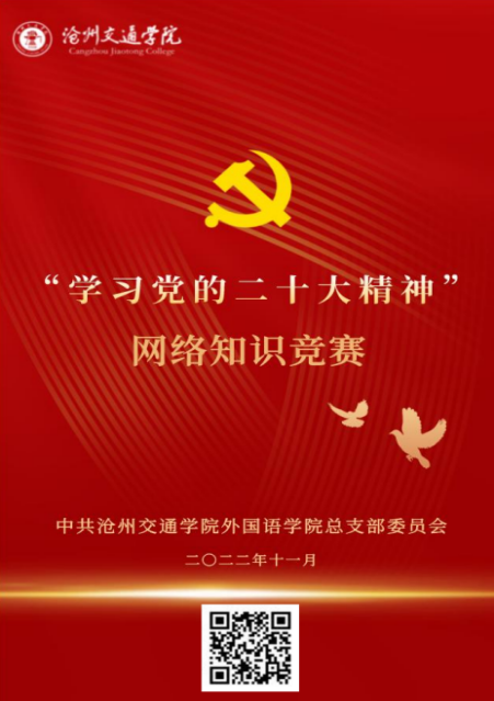 11月24日-28日,sunbet官网外国语学院“学习党的二十大精神”网络知识竞赛成功举办,旨在深入学习宣传贯彻党的二十大精神,进一步掀起学习热潮。