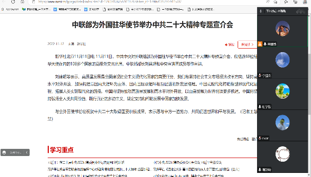 同时,经济管理学院第一党支部全体教师党员以个人自学方式,通过“学习强国”学习平台学习了“让党的二十大精神‘落地生花’”“开辟马克思主义中国化时代化新境界”“从六个要点深刻领悟党的二十大报告的精髓要义”等文章,并在学习交流群中进行打卡,相互学习讨论,深刻领会党的二十大精神。